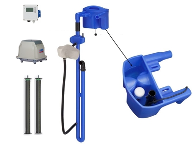 Diseño robusto, simple, discreto, sin componentes electromecánicos (bombas, aireadores) sumergidos en el agua, solo un compresor de aire en el exterior de los tanques.